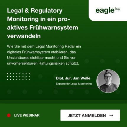Das größte Risiko für Compliance-Verantwortliche ist das, was sie nicht sehen. In unserem kompakten Webinar zeigen wir Ihnen, wie Sie mit dem Legal Monitoring Radar ein digitales Frühwarnsystem etablieren, das Unsichtbares sichtbar macht und Sie vor unvorhersehbaren Haftungsrisiken schützt.